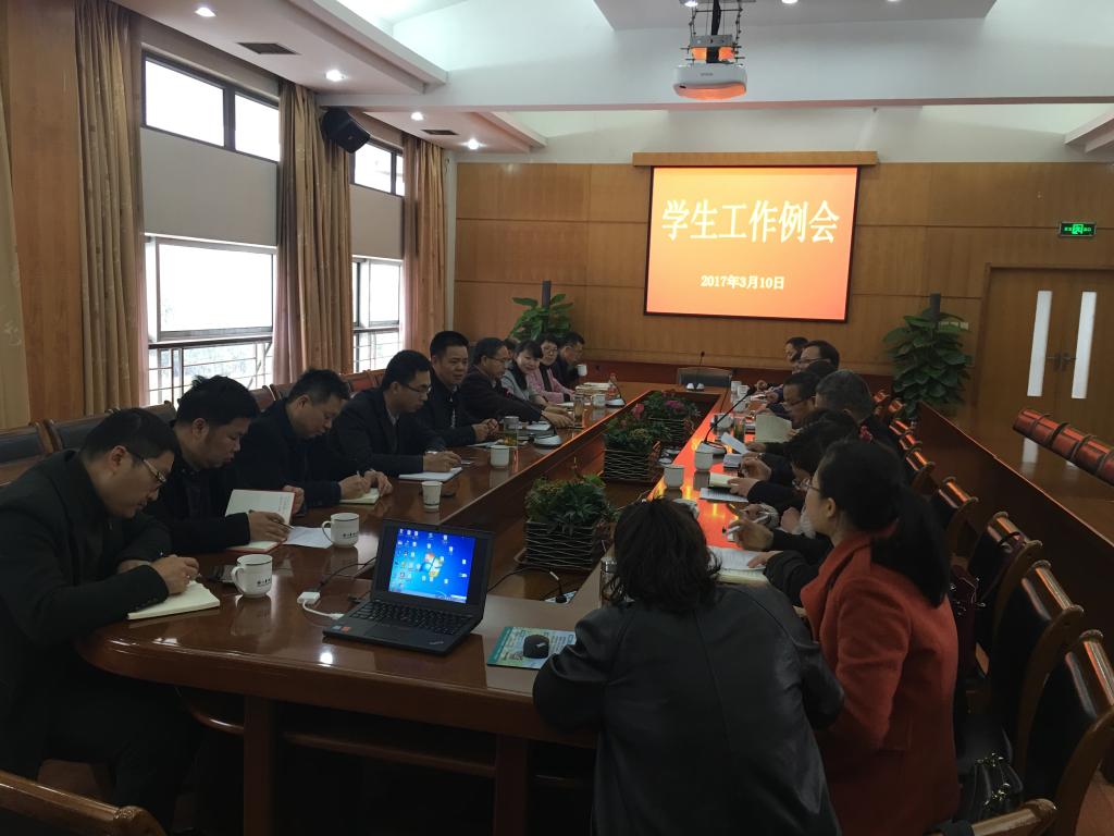 宣传部、学工部、研工部、保卫处、校团委及各学院分别就2017年学生工作计划进行了汇报交流。