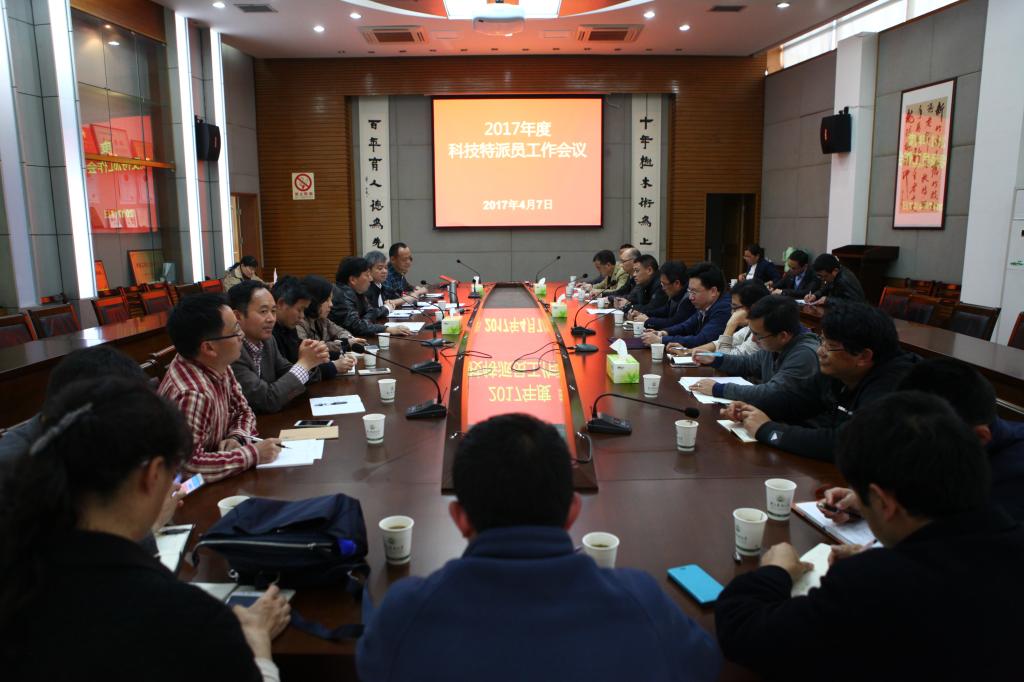 4月7日下午,社会合作处组织召开了2017年科技特派员工作会议。副校长金佩华出席会议,全体新派科技特派员、特派员协作组代表和社会合作处相关人员参加会议。