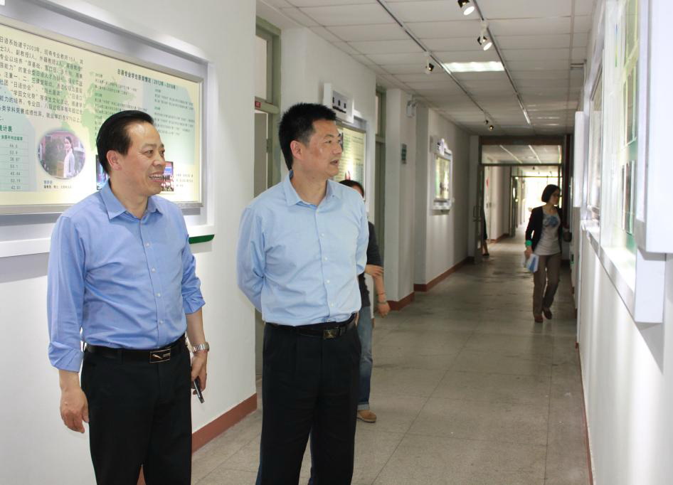 4月18日,副校长沈希到外国语学院走访并指导教评工作。