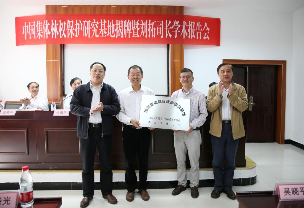 4月19日,中国集体林权保护研究基地揭牌仪式在经管学院学术报告厅举行。国家林业局农村林业改革发展司司长刘拓、浙江省林业厅总工程师蓝晓光、浙江省林业厅政策法规处处长吴晓平、杭州市林水局副局长陈勤娟、森林资源处处长汤惠明,校科技处处长吴家胜、经管学院党政领导班子及100余名师生代表参加了揭牌仪式。揭牌仪式由副校长金佩华主持。