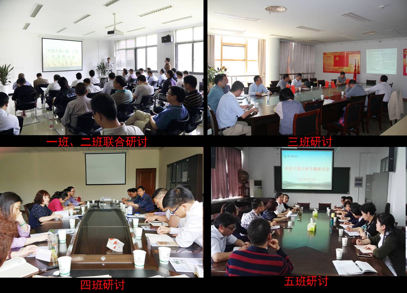 根据学校2017年干部培训计划,近日,中层干部校内五个班组分别围绕“完善党政联席会议制度,提升学院治理能力”等主题开展分班研讨。