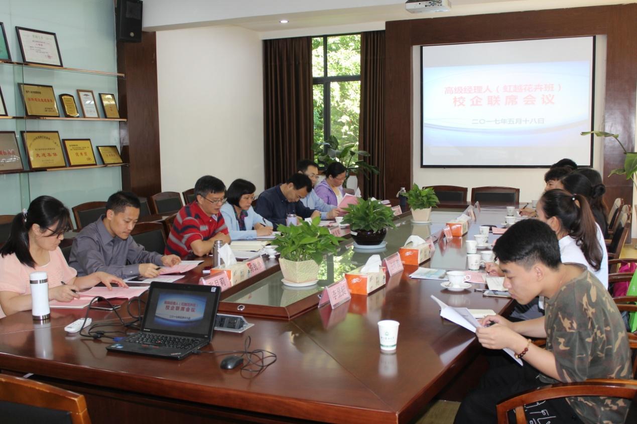 近日,学校召开高级经理人(虹越花卉班)校企联席会议,专题研讨高级经理人(虹越花卉班)人才培养相关工作。副校长沈月琴、浙江虹越花卉股份有限公司副总裁厉萍、教务处处长梅亚明、经济管理学院党政班子成员等参加会议。会议由经济管理学院执行院长吴伟光主持。