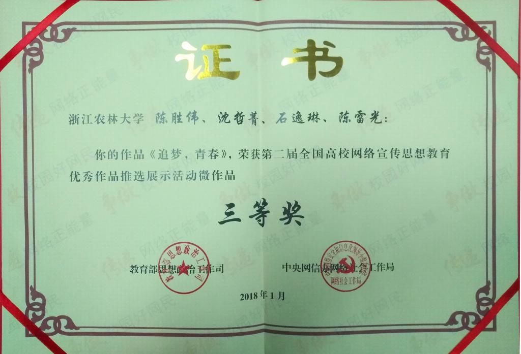 近日,由教育部思政司、中央网信办网络社会工作局联合开展的“全国高校网络宣传思想教育优秀作品推选展示活动”获奖作品揭晓,BEAT365党委宣传部指导、学生通讯社摄制的青春系列微电影之《追梦,青春》荣获微作品三等奖。