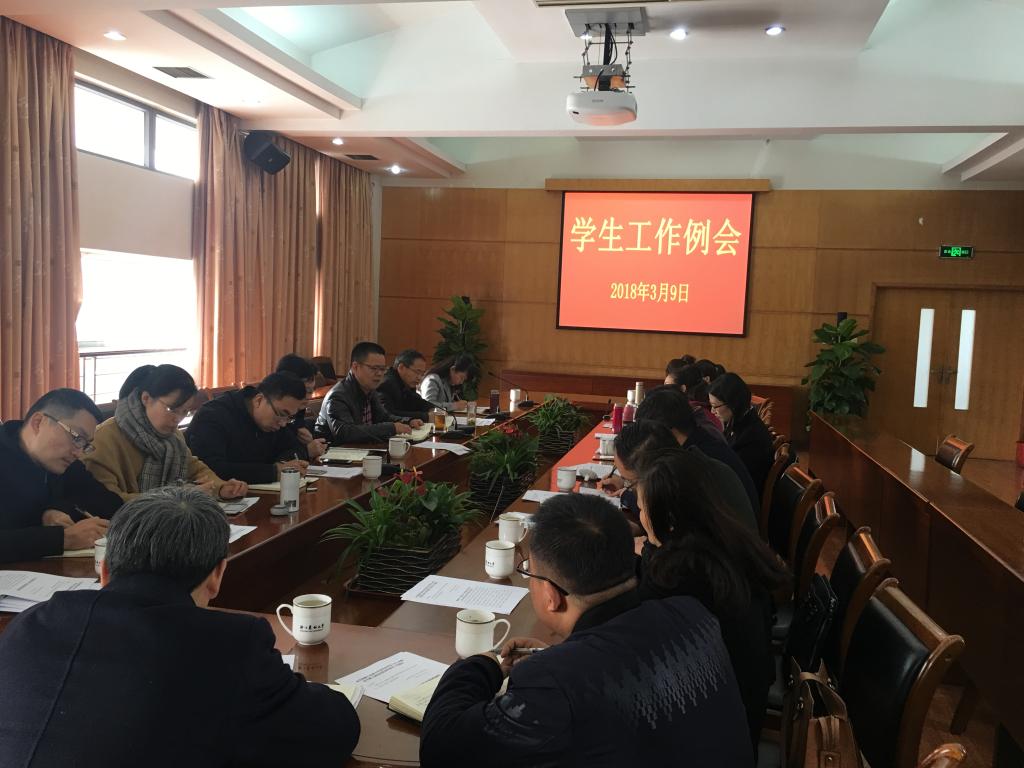 3月9日上午,学校召开学生工作例会,研讨部署新学期学生工作,会议由校党委副书记史永安主持。宣传部、学工部、研工部、保卫处、团委相关负责人及各学院分管学生工作负责人参加会议。