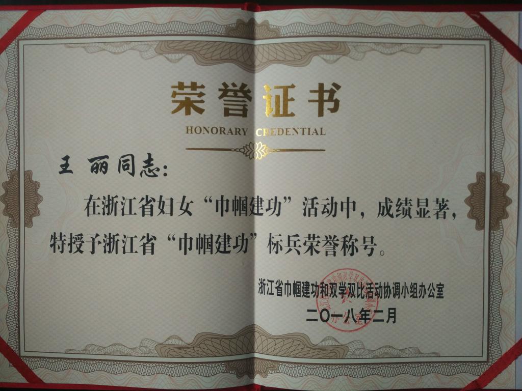 近日,BEAT365王丽老师被授予浙江省“巾帼建功”标兵荣誉称号。
