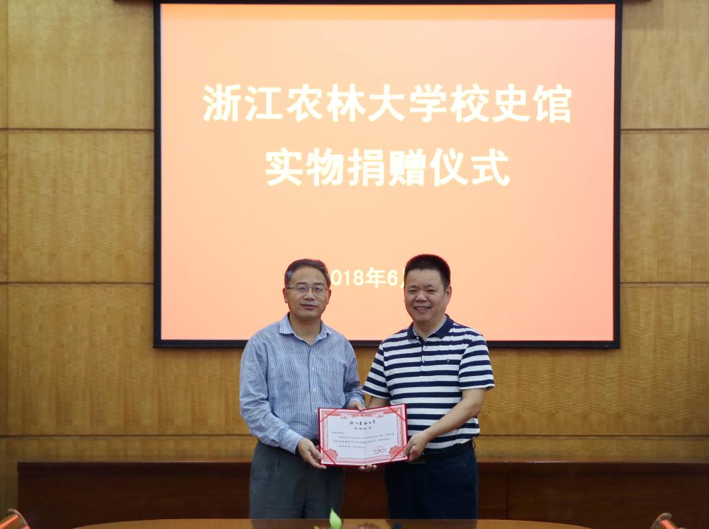 校党委委员、宣传部长胡祖吉,文法学院院长王长金分别向学校捐赠80年代学生毕业纪念品和校报创刊号等实物档案,史永安对捐赠者表示感谢并颁发捐赠证书。