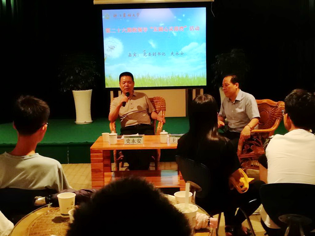 9月19日晚,校党委副书记史永安做客第二十六期校领导“东湖心灵港湾”,与来自各学院的30余名学生促膝而谈。