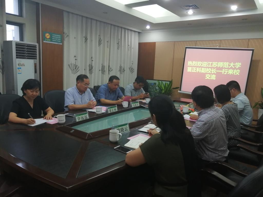 近日,江苏师范大学副校长苗正科一行四人来校调研学科建设工作,副校长沈希接待了来访客人,学科办相关负责人参加座谈会。