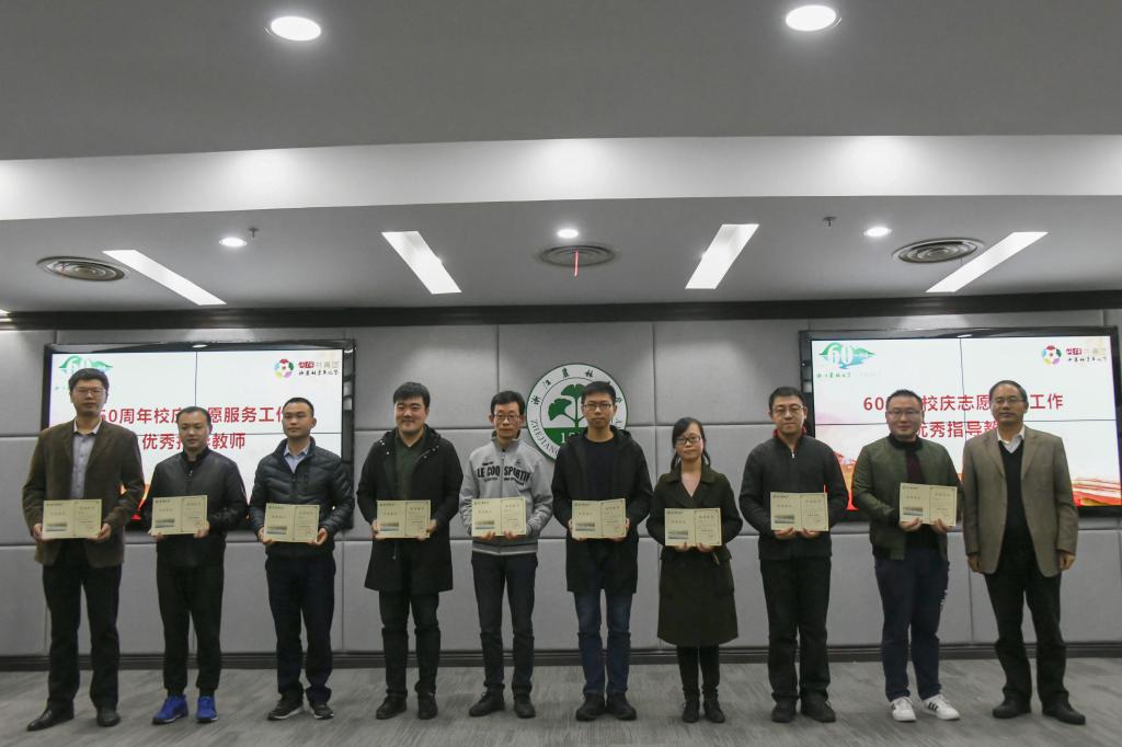 表彰大会上,与会领导为校庆志愿者代表颁发了校庆志愿服务工作纪念证书,对校庆志愿服务期间表现优秀的志愿者及教师代表们颁发了先进个人荣誉证书。