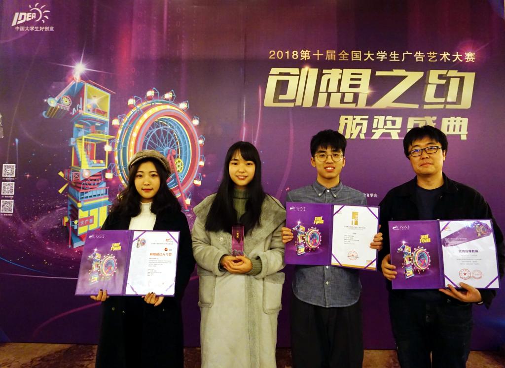 11月24日,第十届全国大学生广告艺术大赛(简称“大广赛”)在北京政协礼堂举行,由文法学院广告学专业汪永奇老师指导,广告学专业谢帆、俞钰琦同学创作的作品《纳善言 予鼓励》荣获平面类一等奖,汪永奇老师获“优秀指导教师”称号。