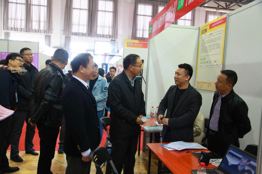 校党委委员、宣传部部长胡祖吉到招聘会现场指导工作,与用人单位和毕业生就做好就业创业、加强就业服务工作进行深入交流。