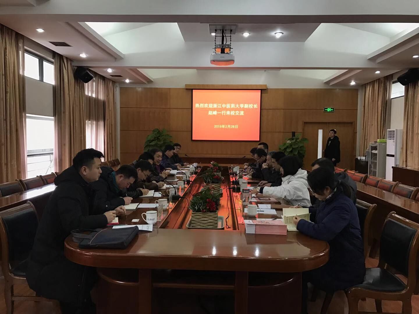 2月28日上午,浙江中医药大学副校长赵峰一行来校调研交流。校领导王自勇接待了来访客人,建管处、后勤集团相关负责人参加座谈。