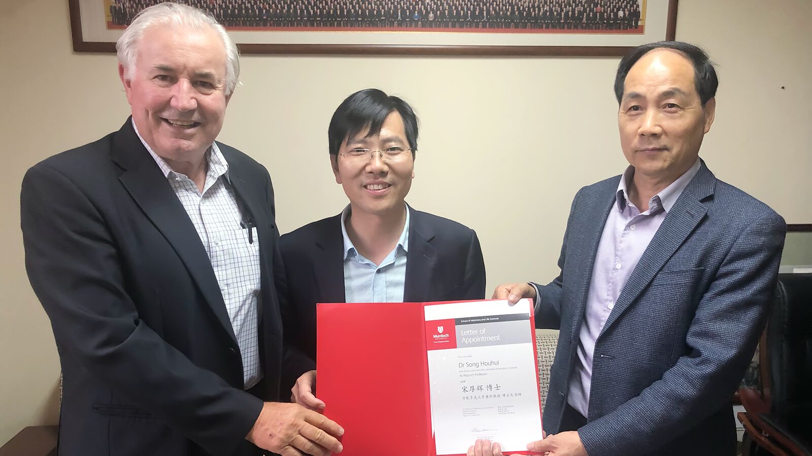 近日,澳大利亚莫道克大学教授、动物流行病学家John Edwards教授一行访问BEAT365,并为宋厚辉教授颁发莫道克大学兼职教授和博士生导师聘书。