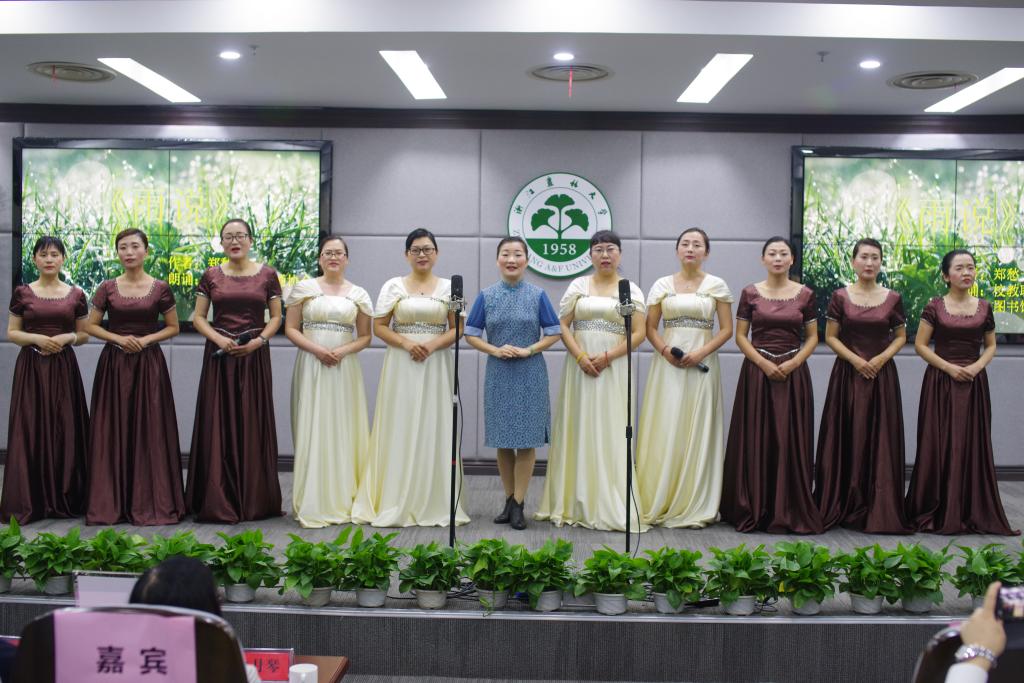 开幕式上,朗诵协会的教职工、学生就“绽放芳华、筑梦农林”主题,进行了《岳阳楼记》、《雨说》等经典美文诵读,学生书模们还精彩展示了“百年芳菲”、“春日诗”、“中国梦”等系列推荐图书。参会领导还为2018年度“十大借阅之星”颁奖,为彭春友总经理颁发“阅读推广大使”聘书。
