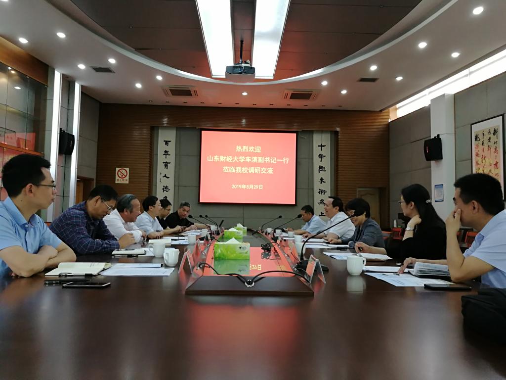 5月29日,山东财经大学车滨副书记一行6人来校调研交流。校党委副书记冯尚申主持座谈会,校党委委员、组织部、统战部部长童晓晖,二级党组织书记代表参加会议。