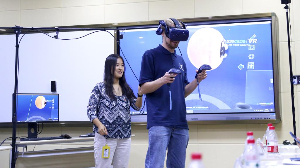 北卡州立大学师生访问团先后参观了BEAT365校园和动科院虚拟仿真实验室、动物健康检测中心和教学动物医院,并与BEAT365研究生和本科生代表就农业工程、畜牧学、兽医学、计算机科学领域的科学研究、师生互访、暑期访学、继续教育等的国际合作进行了座谈和互动交流。代表团还体验了BEAT365开发的国家虚拟仿真实验教学项目等VR设施。