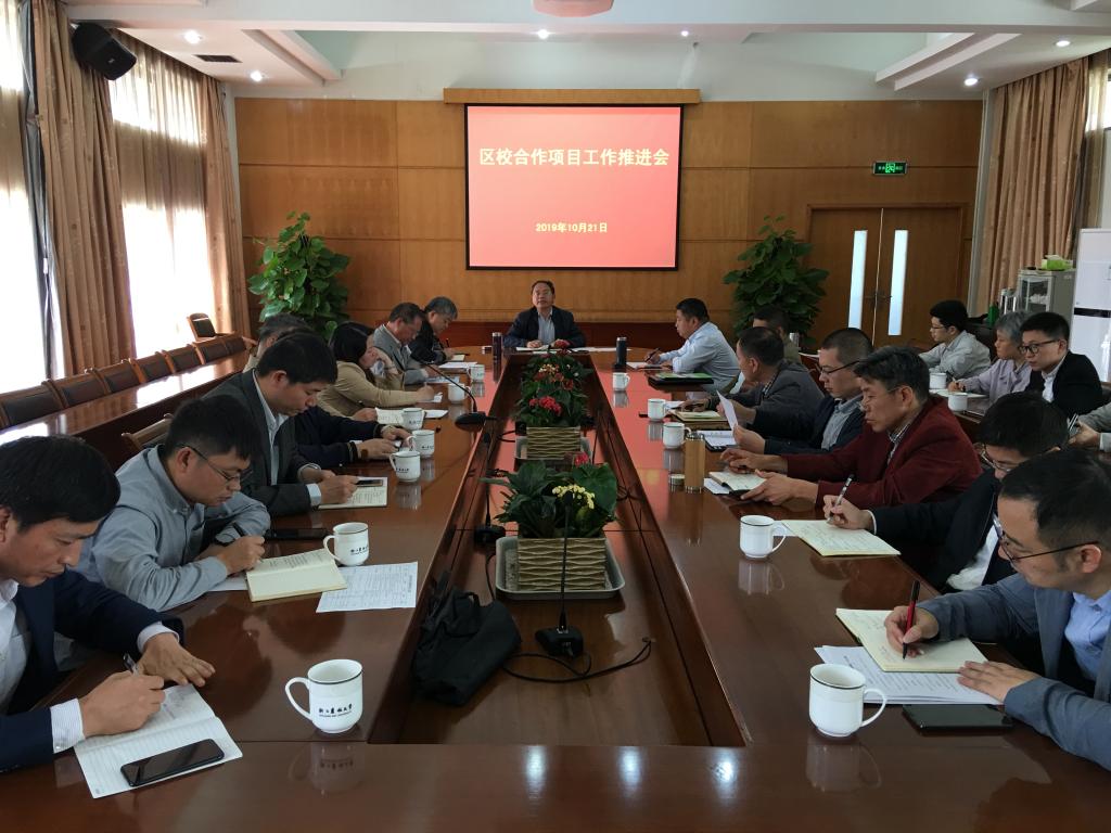 10月21日,学校召开区校合作项目工作推进会,副校长胡祖吉主持会议,社会合作处、科技处及“930服务项目”各负责人参加会议。