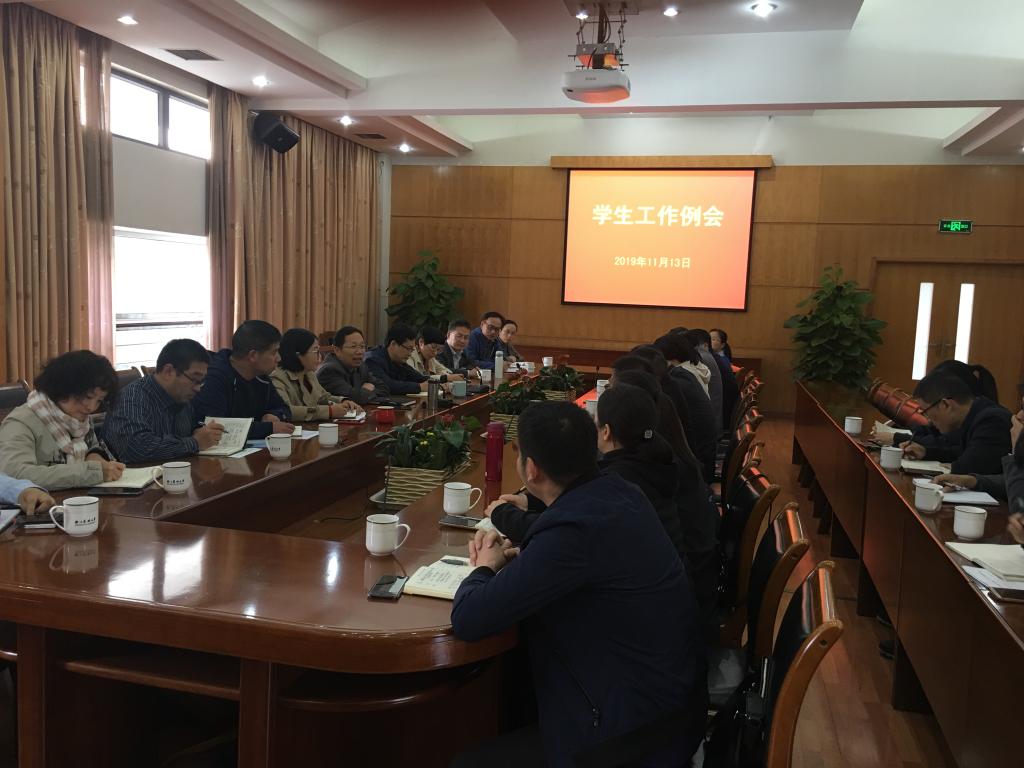 宣传部、学工部、研工部、教务处、建管处、保卫处、团委、后勤集团等部门负责人及各学院分管学生工作负责人参加会议。