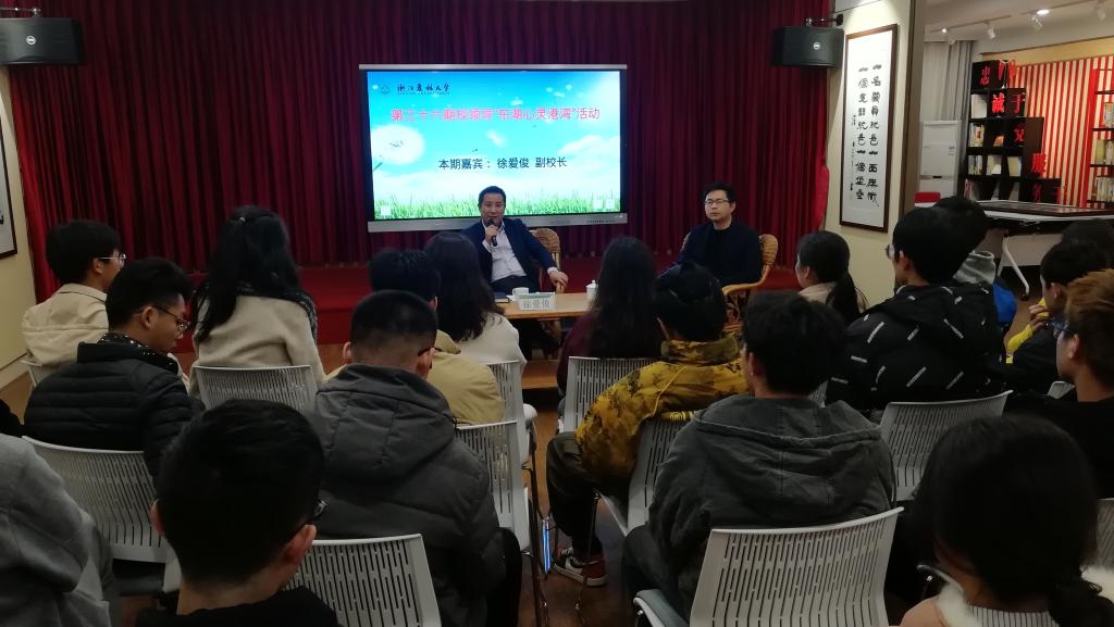 12月18日晚,学工部举办第三十六期“校领导东湖心灵港湾”活动。副校长徐爱俊与来自各学院的32名学生代表一起面对面交流。