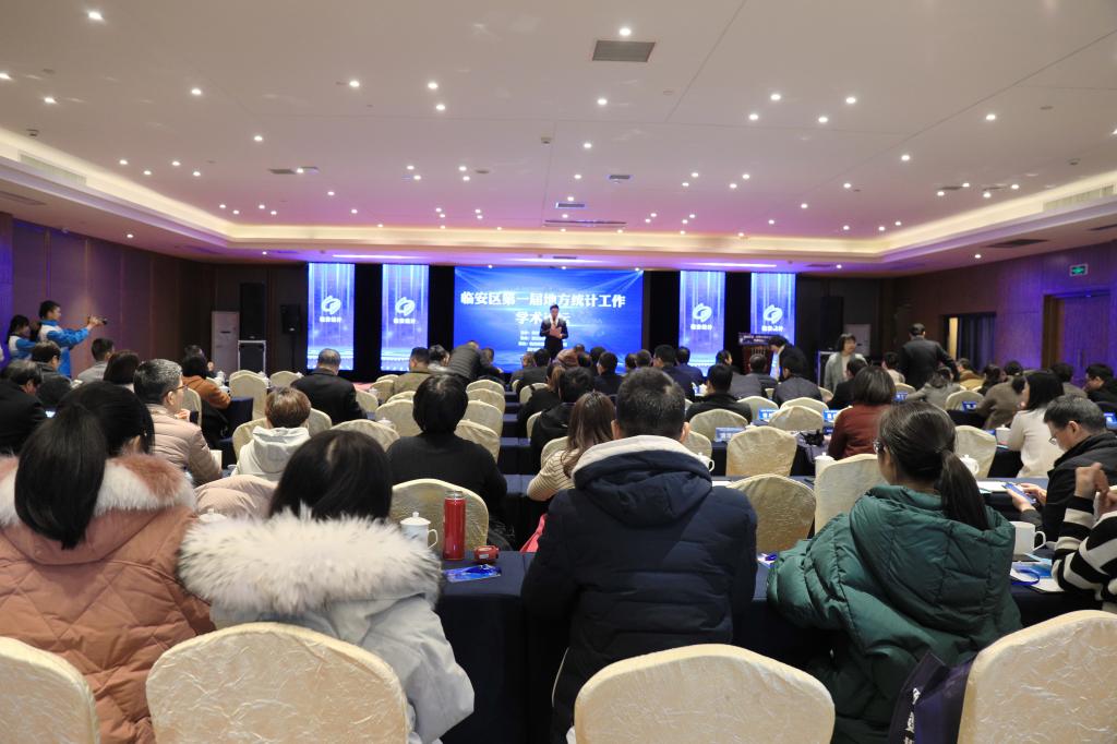 临安区统计局、区人大、区政府办统计工作分管领导,理学院师生代表、杭州求是统计调查有限公司和部分企业代表100余人参加论坛。