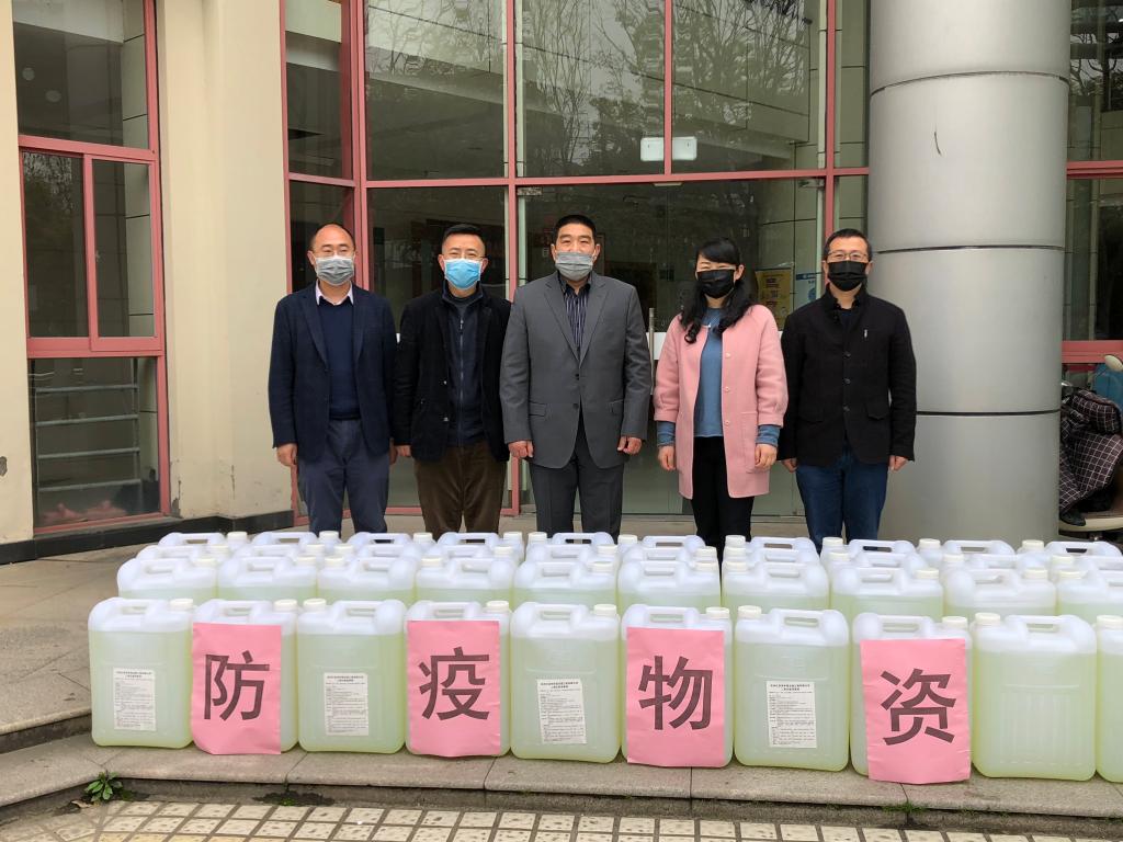 各学院部门众志成城,捐赠物资助力抗疫。理学院党委筹措了1吨防疫消毒药剂,并于4月3日向建管处交接了防疫消毒物资,用于校园消毒,为学校师生员工的复工复产提供了安全保障。