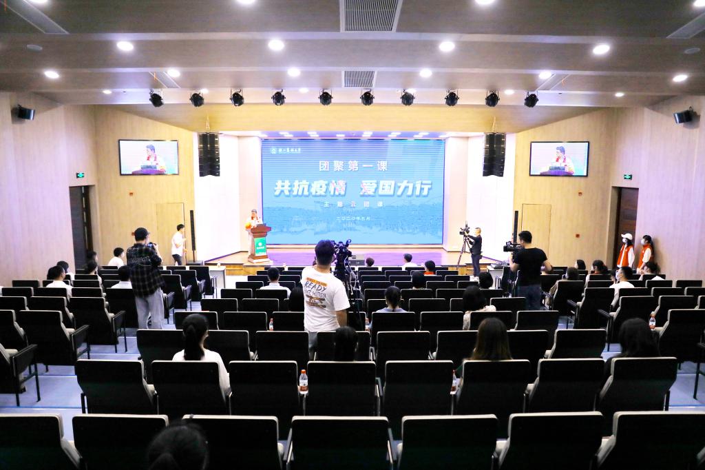 校党委副书记施美红出席会议并讲话,宣传部、学工部、团委等部门负责人以及师生代表现场听课,近7千学生通过云直播的方式参加云团课。