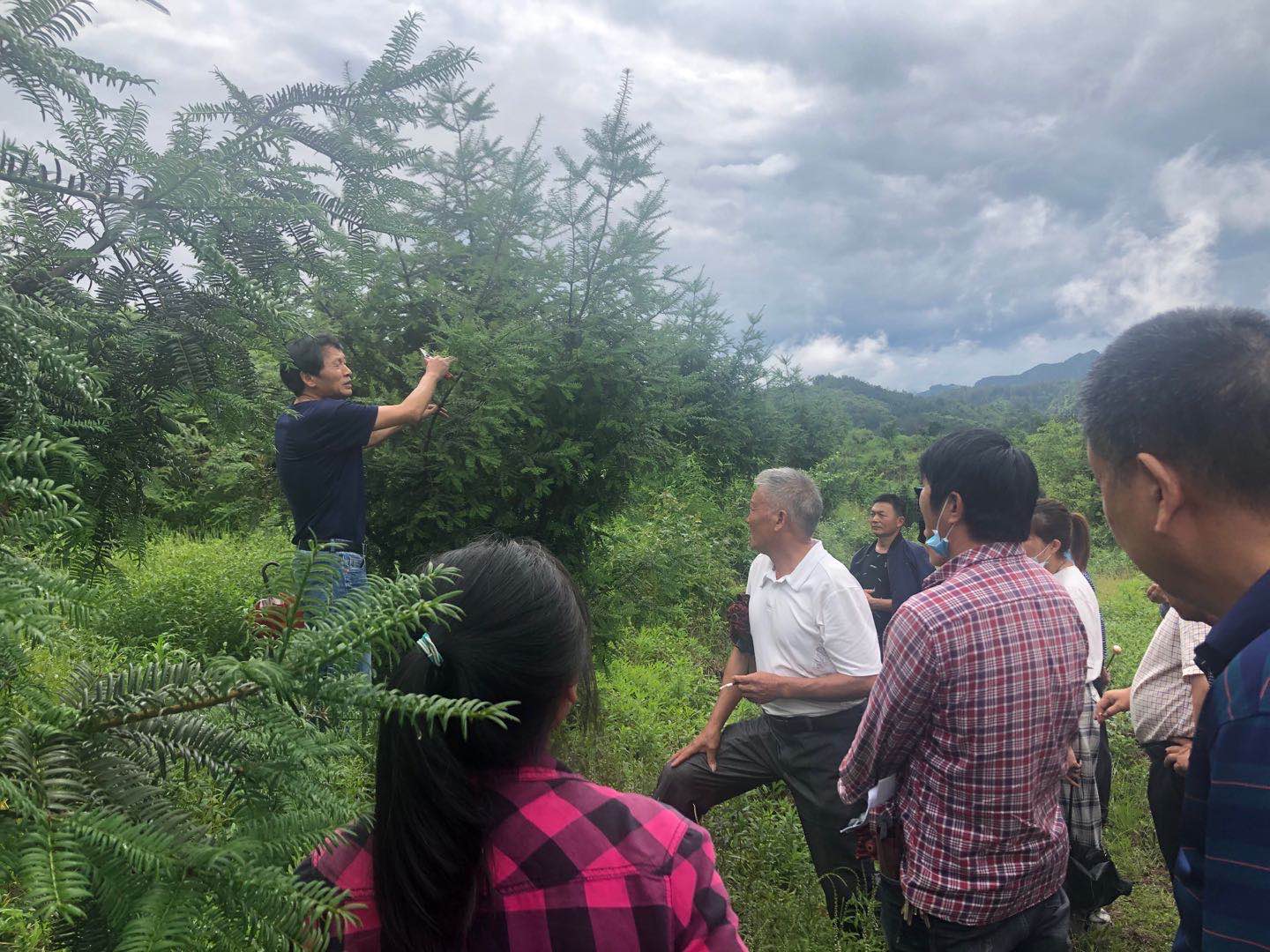 在武义县坦洪乡政府,喻卫武副教授培训了香榧贴枝接技术、榧树种子催芽方法以及病虫害防治等香榧栽培关键技术,派发了香榧栽培最新资料;在坦洪乡,戴文圣教授、喻卫武副教授在金隆香榧基地对五十来户栽培大户进行了枝条修剪现场指导,帮助企业和农民解决产业发展过程中遇到的难题,真正把“论文写在大地上,成果送到农林家”。