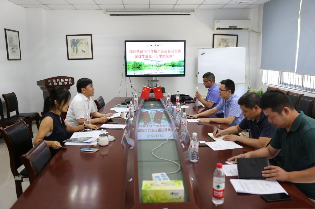 8月23日上午,2022年第十九届杭州亚运会马管委主任邹建华一行来BEAT365动科动医学院考察交流。校党委委员、动科动医学院院长宋厚辉参加交流会。