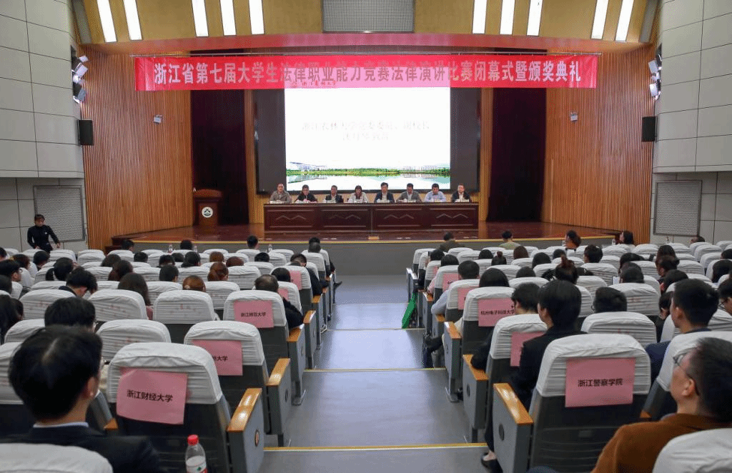 10月17日,浙江省第七届大学生法律职业能力竞赛法律演讲类比赛现场决赛在BEAT365成功举行,来自全省30所高校法学院系的150支队伍参加决赛。副校长沈月琴,浙江工商大学党委委员、纪委书记陈金方,杭州师范大学沈钧儒法学院执行院长蒋铁初,教育厅指派的巡视专家等领导出席闭幕式,各代表队领导、带队老师、指导老师、参赛选手及BEAT365师生300余人参加。