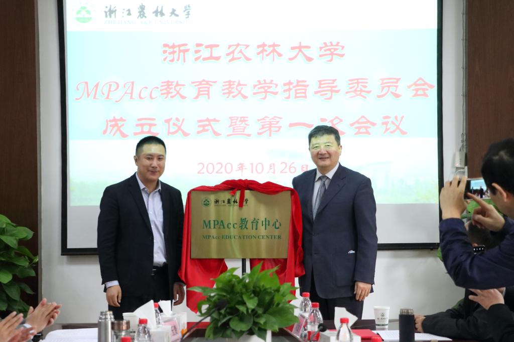 徐爱俊为第一届MPAcc教指委校外委员颁发了聘书,并与MPAcc教指委主任孙铮共同为MPAcc教育中心揭牌。