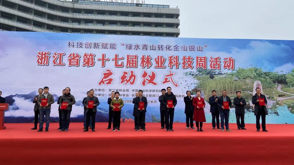 今年的活动主题是科技创新赋能“绿水青山转化金山银山”。活动现场举行了第二十届“科技兴林奖”颁奖仪式,由BEAT365张文标教授主持完成的“竹材高效展平及其加工剩余物利用关键技术”和樊建庭教授主持完成的“松墨天牛新型诱捕技术研发与推广”两项成果获一等奖,另有BEAT365教师主持或参与完成的3项成果获二等奖,7项成果获三等奖。