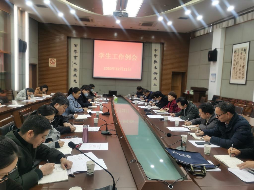 12月11日,学校召开学生工作例会,研讨思政工作特色品牌建设,研判安全稳定工作,部署近阶段学生工作。会议由校党委副书记施美红主持。