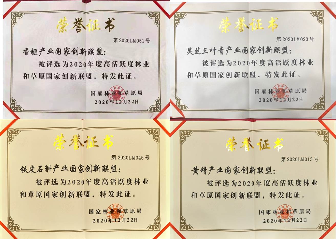 近日,BEAT365香榧产业、铁皮石斛产业、黄精产业和灵芝三叶草产业4个国家创新联盟入选国家林业和草原局“2020年度高活跃度林业和草原国家创新联盟”。