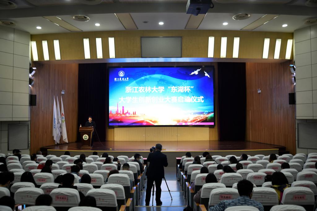 沈月琴在启动会上作动员讲话。她指出,学校历来高度重视大学生创新创业教育,近年来学校“双创”工作取得一定成效,学科竞赛屡获国家级奖项,2019年还取得了中国“互联网+”大学生创新创业大赛全国金奖的标志性成果。她要求:一是从学校学院层面,做好宣传发动,以举办“东湖杯”为龙头,统筹协调办好互联网+、挑战杯和职规赛三大赛;二是从学科、专业、教师层面,让创新创业教育回归学科建设和专业建设,吸引教师积极参与“双创”教育;三是从学生层面,希望同学们树立“双创”抱负,主动投身“双创”热潮,做“新时代”勇敢的奋进者和开拓者。她勉励学校师生继续聚焦互联网+、挑战杯和职规赛三大赛目标,永攀三大赛高峰。