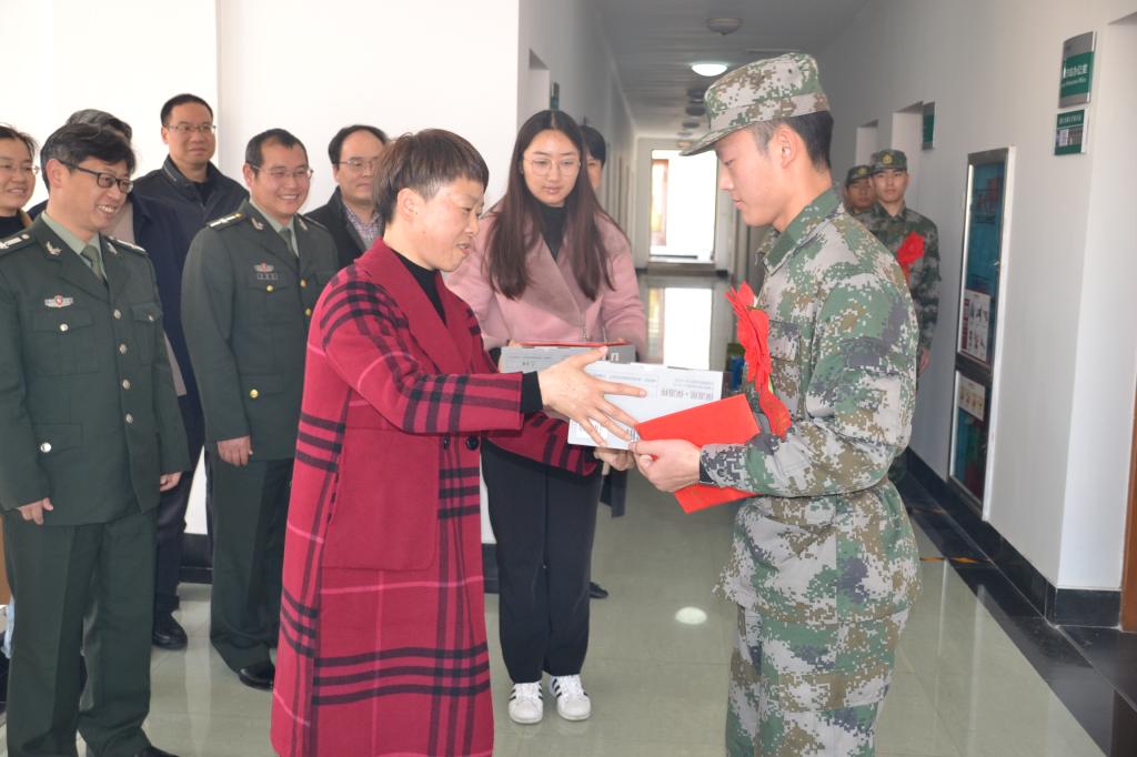 施美红为入伍新兵发放入伍证书和纪念品,并对8名入伍大学生参军入伍、报效祖国表示衷心的祝贺。她指出,当今世界面临百年未有之大变局,强大的国家需要国防,强大的国防需要建设高科技现代化强军,巩固国防,需要新鲜血液的加入,大学生投笔从戎、参军入伍,报效祖国正当时。她对入伍学生提出几点希望:一是继承和发扬人民解放军的优良传统,刻苦训练,勤奋学习,尽快完成从一名大学生向一名合格军人的转变,开创自己的新天地;二是时刻牢记军人使命,发扬“坚韧不拔、不断超越”的精神和“肯干、实干、能干”的三干品质,为学校争光添彩;三是遵守纪律,严格要求,加强团结,学会包容。要在军营集体中体验团结互助的力量,体验团结友爱的温暖。同时,她希望同学们能与学校多多保持联系,学校永远是入伍学生的家和坚强的后盾。