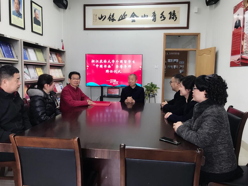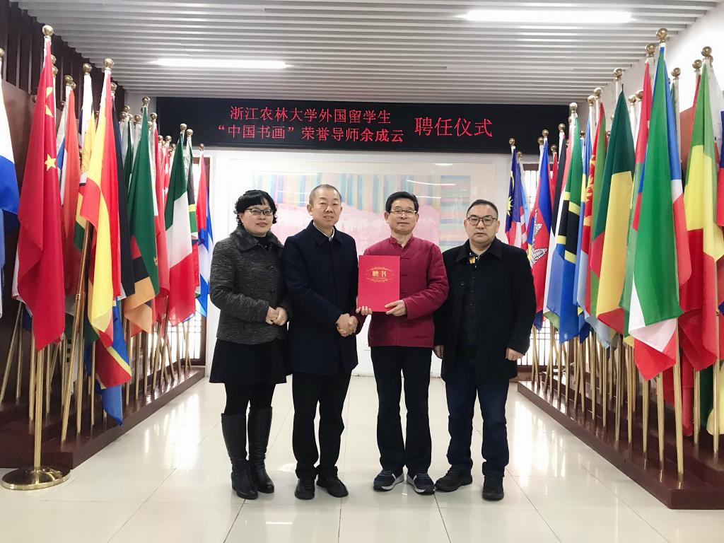 3月19日上午,国际教育学院举办授聘仪式,聘任余成云先生为BEAT365外国留学生“中国书画”荣誉导师。副校长吴家胜为余成云颁发了聘书。国教学院院长赵有华和学院相关负责人出席了本次活动。