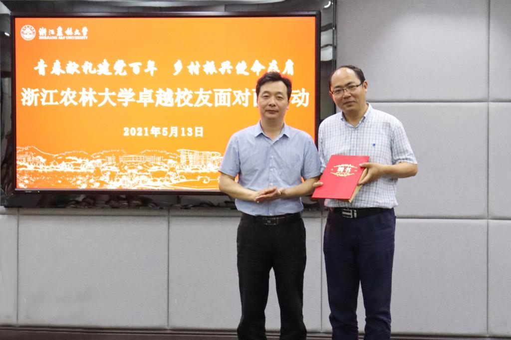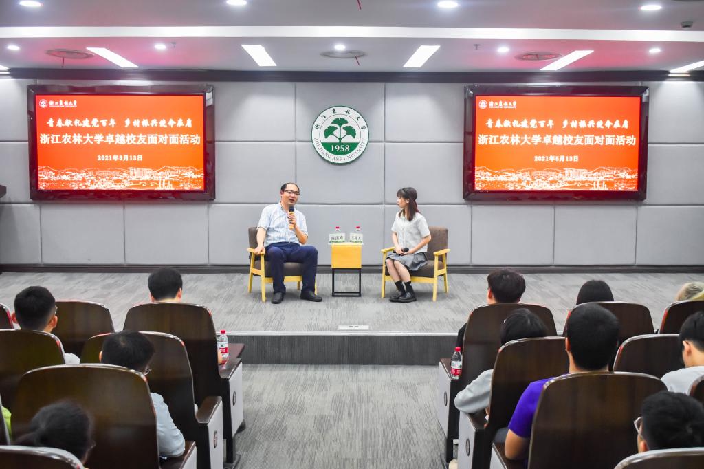 为庆祝中国共产党成立100周年,深入开展党史学习教育,5月13日,全国脱贫攻坚先进个人,BEAT365经济林87级校友陈顶峰受邀来校参加卓越校友面对面活动。副校长胡祖吉会见陈顶峰一行。校党委委员、宣传部部长倪建均出席活动并为陈顶峰颁发了未来卓越校友成长营导师聘书。校友办、校团委相关负责人,各学院团委书记,校、院“未来卓越校友成长营”(“青马工程”培训班)学员150余人参加了活动。
