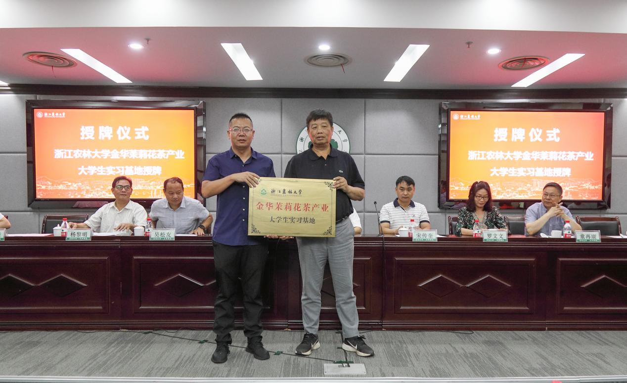 在签约环节,杨黎明同浙江婺洲茶业有限公司总经理高卫芳、浙江卡尔生物技术有限公司总经理林高昂、杭州经世科技有限公司总经理王俊龙依次签署捐赠协议,并向其颁发捐赠证书。园艺科学学院负责人为BEAT365英国官网金华茉莉花茶产业大学生实习基地授牌。