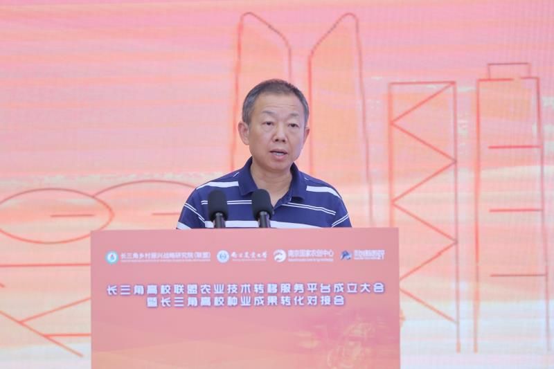 6月26日,长三角高校联盟农业技术转移服务平台成立大会暨长三角高校种业成果转化对接会在南京国家农创中心举行,来自“三省一市”联盟高校、农业科技企业、金融创投机构与地方政府代表共120余人出席会议。副校长吴家胜率合作处工作人员、科研团队代表参加本次会议。