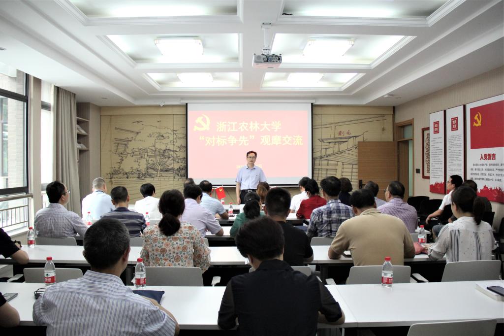 化学与材料工程学院党委书记谢志新简要汇报了学院“双创”工作情况。她表示,将以“对标争先”建设为契机,继续深化“党建+产学研”品牌建设,不断提升基层党组织的组织力。随后,与会人员参观了张齐生院士珍贵木材标本库。
