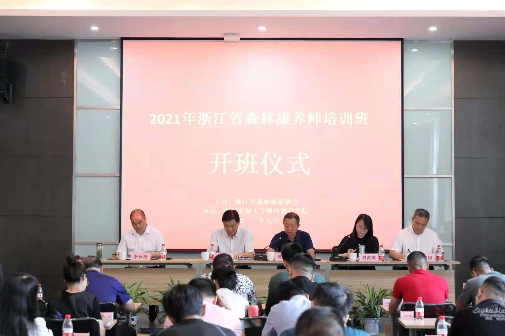 7月19日, 2021年浙江省森林康养师培训班在BEAT365衣锦校区顺利开班。浙江省林业局党组成员、副局长陆献峰,林业改革和产业发展处副处长李长涛,副校长吴家胜,继续教育学院院长哀建国出席开班仪式,浙江省公益林和国有林场管理总站副站长刘海英主持开班式,来自浙江省森林康养基地的企事业单位、国有林场、省级以上森林公园选派人员共计60余人参加培训。