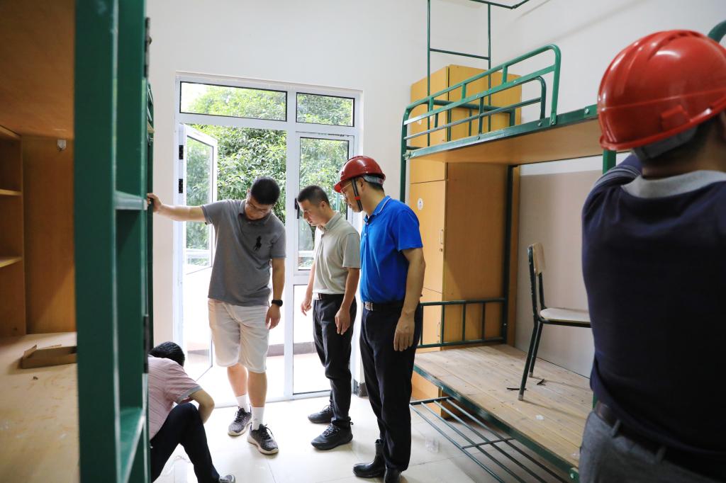 检查组要求,各基建维修项目要高标准要求,高质量施工,在确保工程质量的前提下,与时间赛跑,加快施工进度,确保宿舍、食堂等尽快投入使用,为返校师生营造良好的校园环境。施工人员要牢固树立安全红线意识和底线思维,遵章守纪规范作业,施工时要带好安全帽,规范使用电气设备,及时排查安全隐患,确保施工安全。