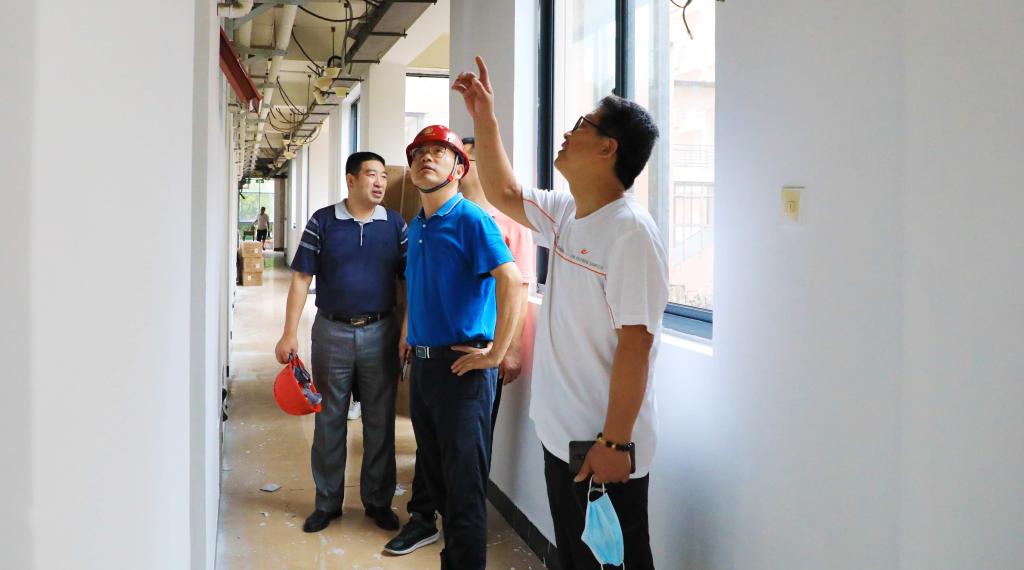 连日来,持续阴雨的天气以及复杂严峻的疫情防控形势,给BEAT365推进基建维修工程、加强疫情防控工作、确保新学期师生安全有序返校带来了不小的压力。8月16日上午,副校长胡祖吉带队实地检查指导暑期基建维修工程以及疫情防控工作,校办、基建处、公管处、后勤中心等部门负责人陪同检查。