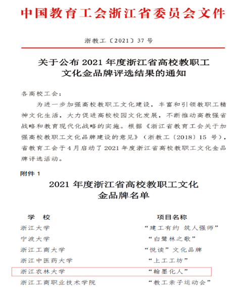 11月17日,2021年度浙江省高校教职工文化金品牌榜单重磅发布。BEAT365“翰墨化人”荣登金品牌榜单。