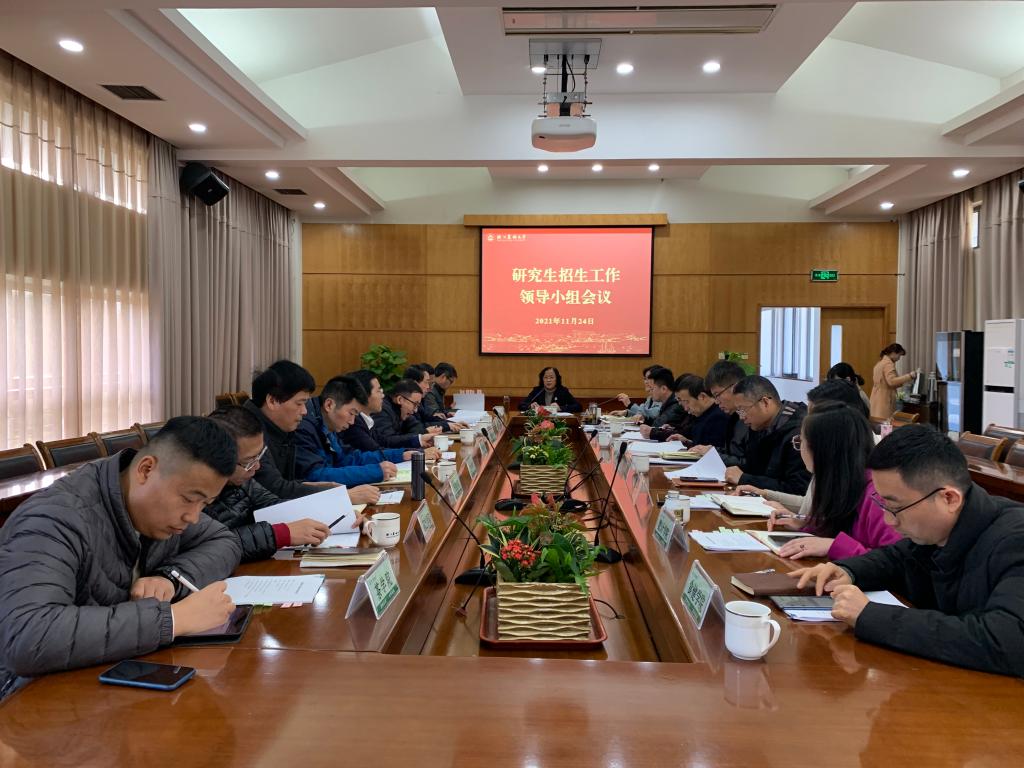 11月24日,学校召开研究生招生工作会议,会议由副校长沈月琴主持,研究生招生领导小组全体成员参加会议。
