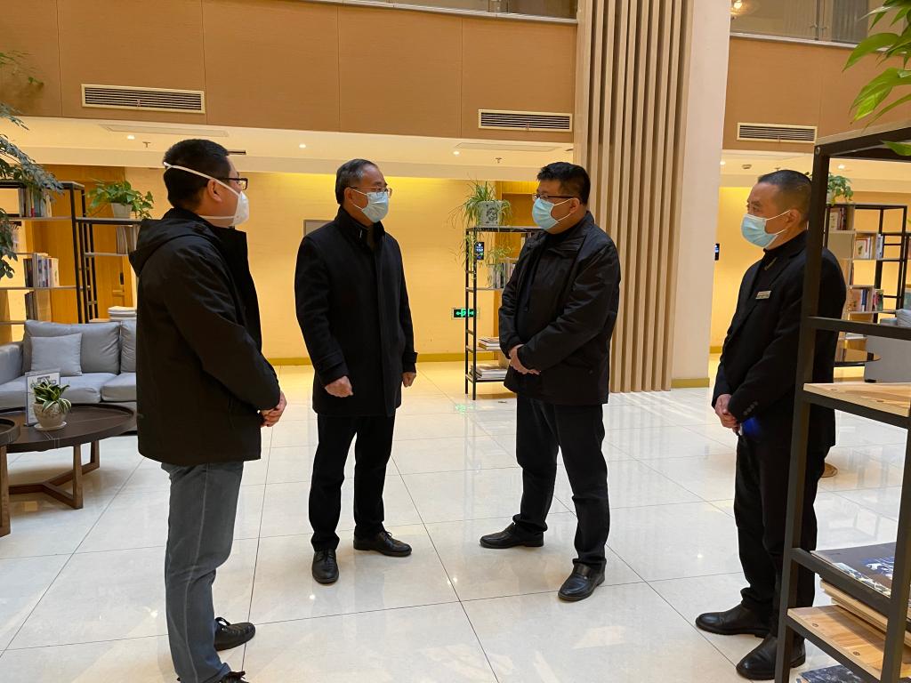 12月14日,副校长胡祖吉到学术交流中心了解日常健康监测学生生活状况及学校监测点情况,公管处、后勤中心相关负责人陪同。