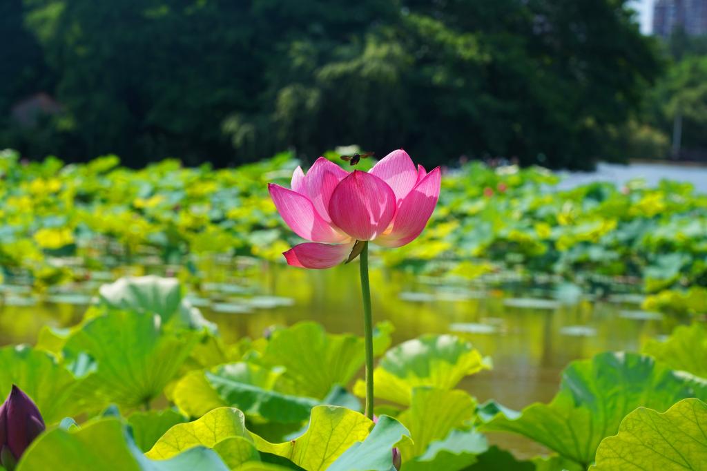 娇妍小荷遇上低飞的蜻蜓