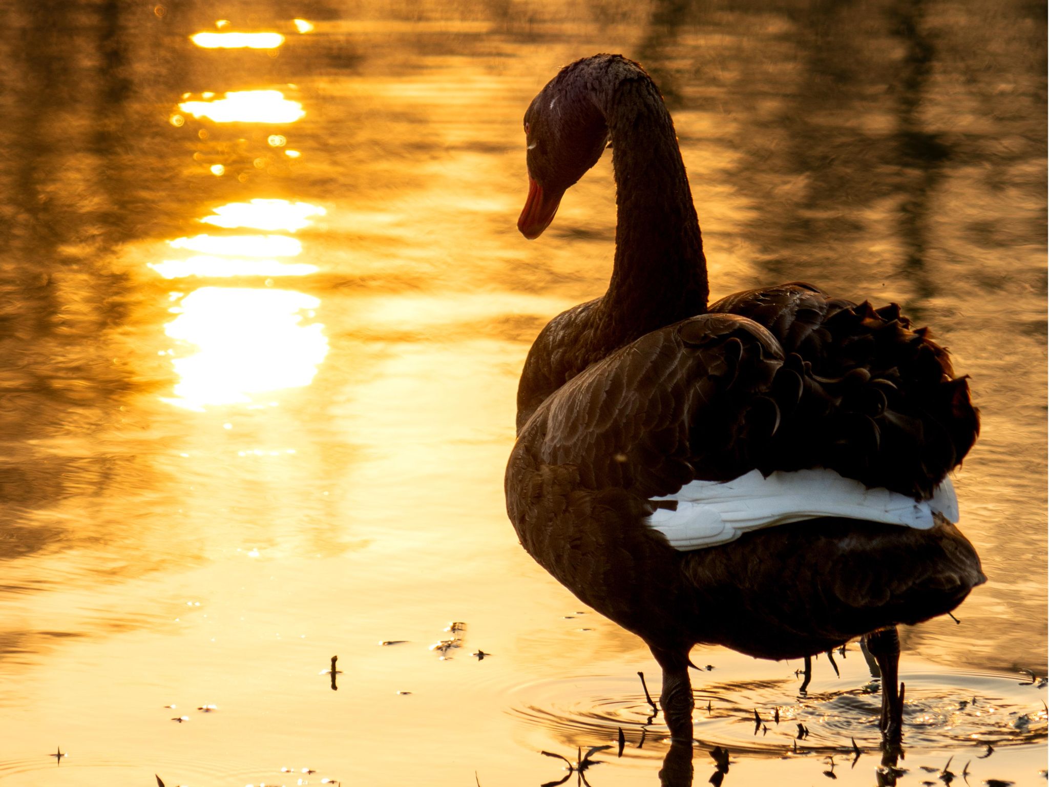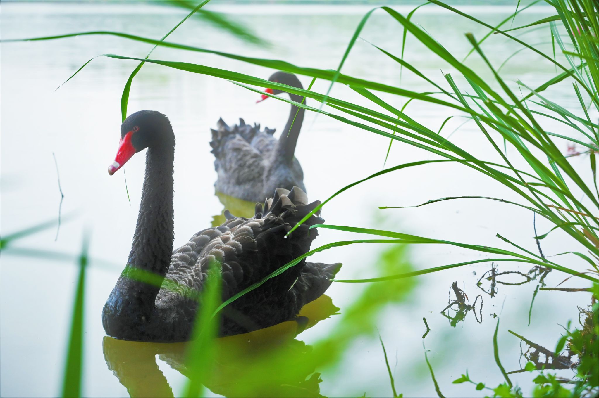 而黑衣红喙、优雅悠闲的黑天鹅家族