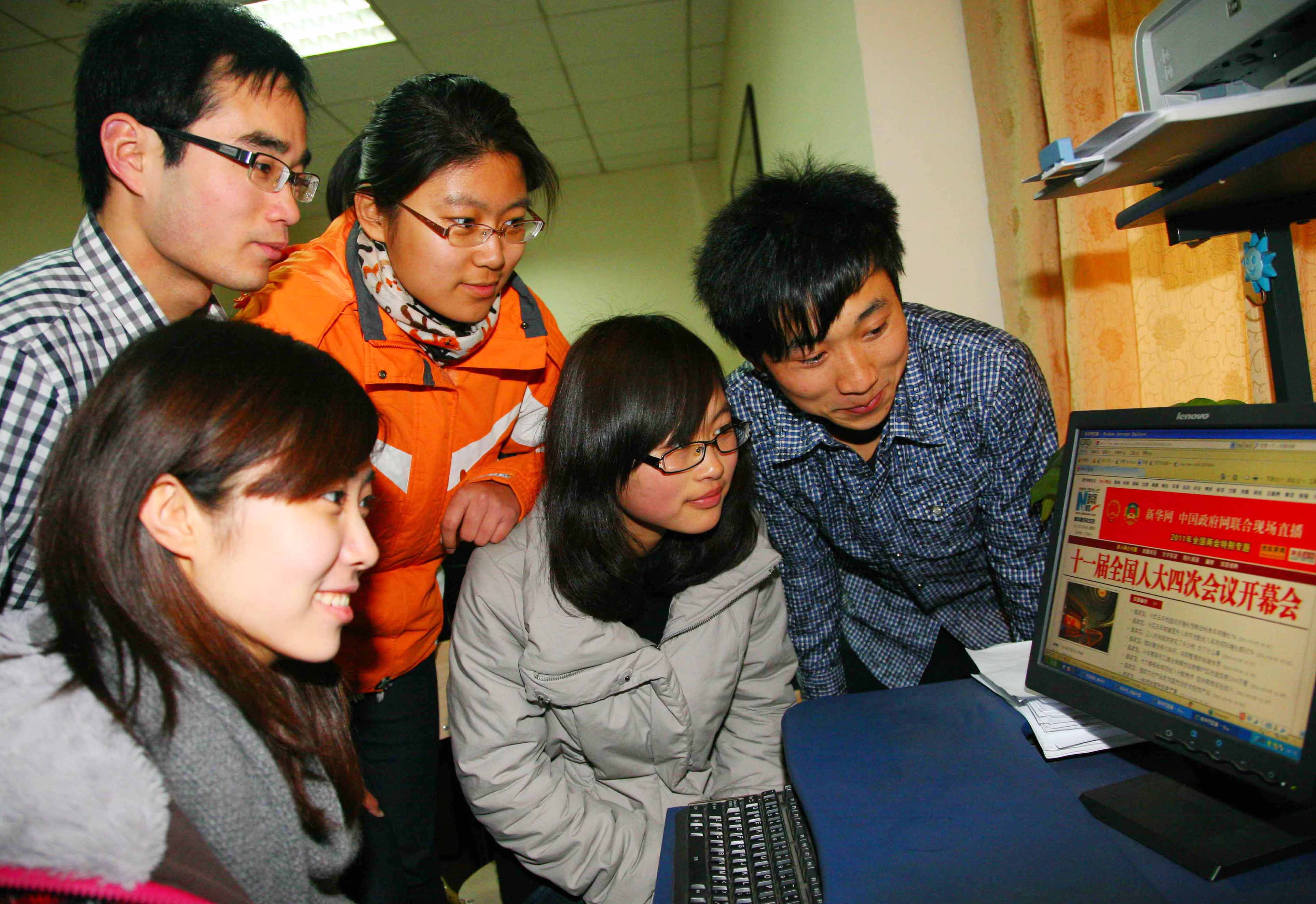 3月5日中午,在校团委的组织下,BEAT365部分团学干部,正通过网络学习、了解“两会”的有关信息内容。