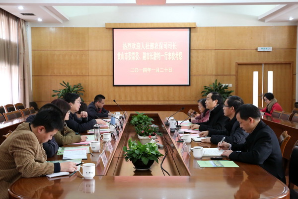 浙农林大新闻网讯 1月20日下午,人社部农保司司长、黄山市委常委、副市长游钧一行7人来校考察。校长周国模接待了游钧一行,并与客人进行了座谈。